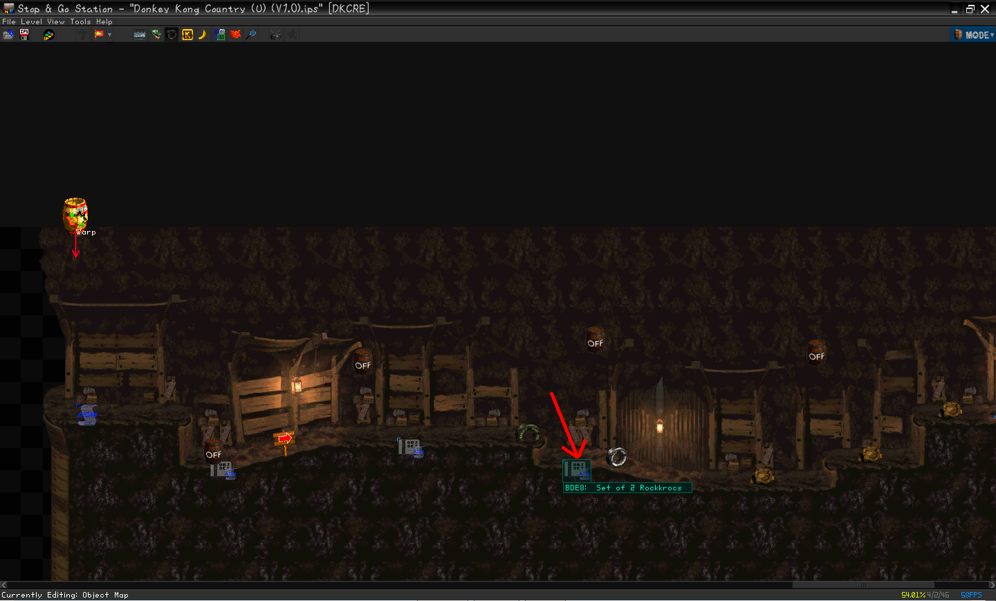 The object map data for compound objects is usually stored right after the normal object map data for a level. If you use a larger quantity of objects in a level than the original game used, you run a risk of overwriting this data. Oh, so the unedited game is crashing when this level is AutoLaunched from DKCRE?