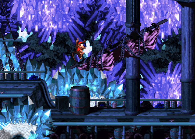Music: either DKC1 cave or DKC3 cliff